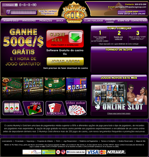 Com uma das taxas de pagamento mais altas da área, Mummy Gold é um cassino online que já possui renome internacional. É um dos mais buscados por novos apostadores e por quem já possui a experiência de cassinos reais. A interface gráfica é muito boa e o programa que o site dispõe é de fácil manipulação. Com um leve toque do Egito antigo, o ambiente é de classe e oferece uma experiência diferente a quem navega pelo Mummy Gold. Um grande destaque deste site é que fornece regularmente premiações extras e promoções. Muitos bônus são oferecidos, como o de U$500 logo ao se cadastrar.